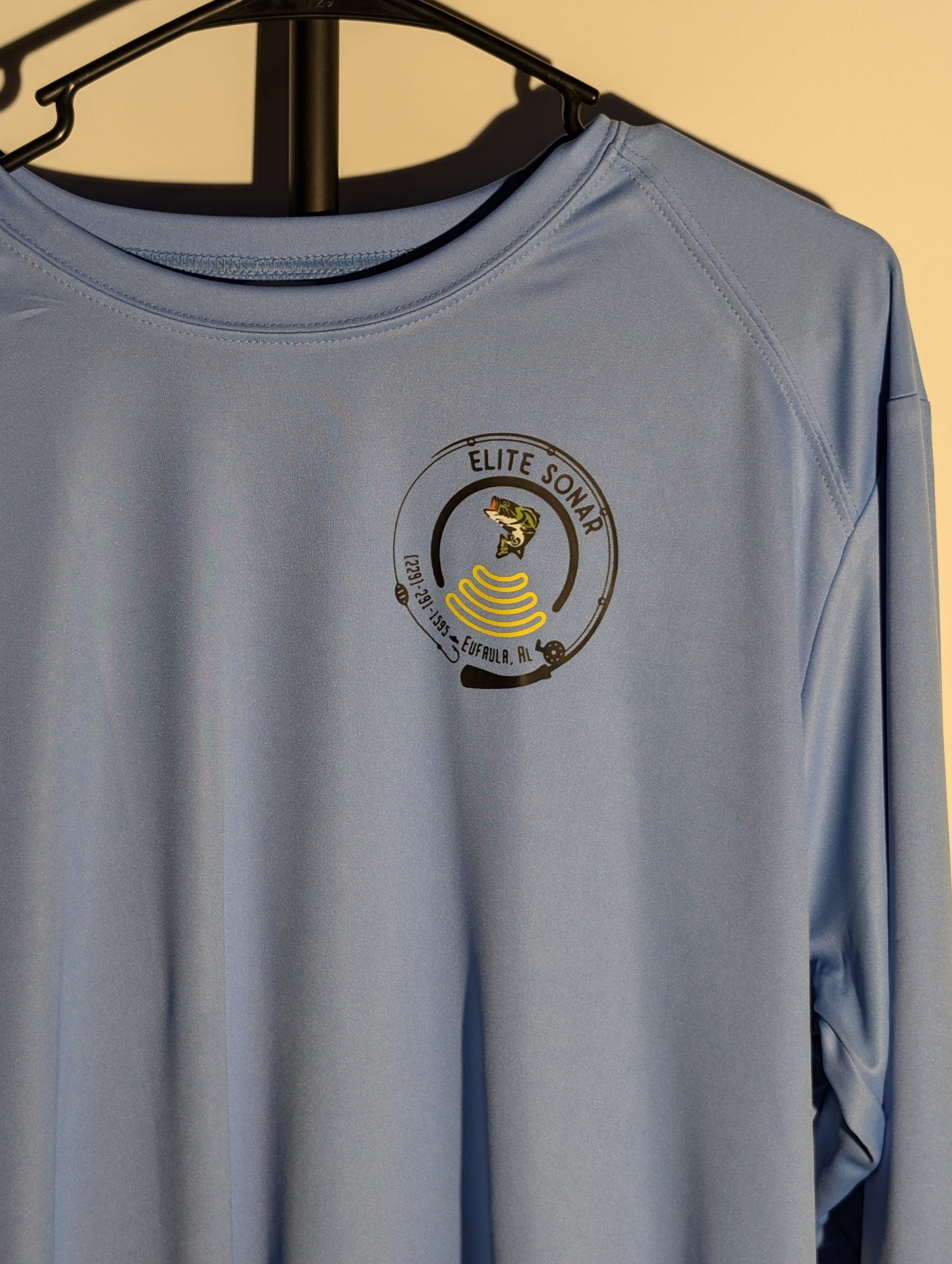Show your fishing pride and represent Elite Sonar wherever you go. Order your long-sleeve blue shirt today at elitesonar.com!